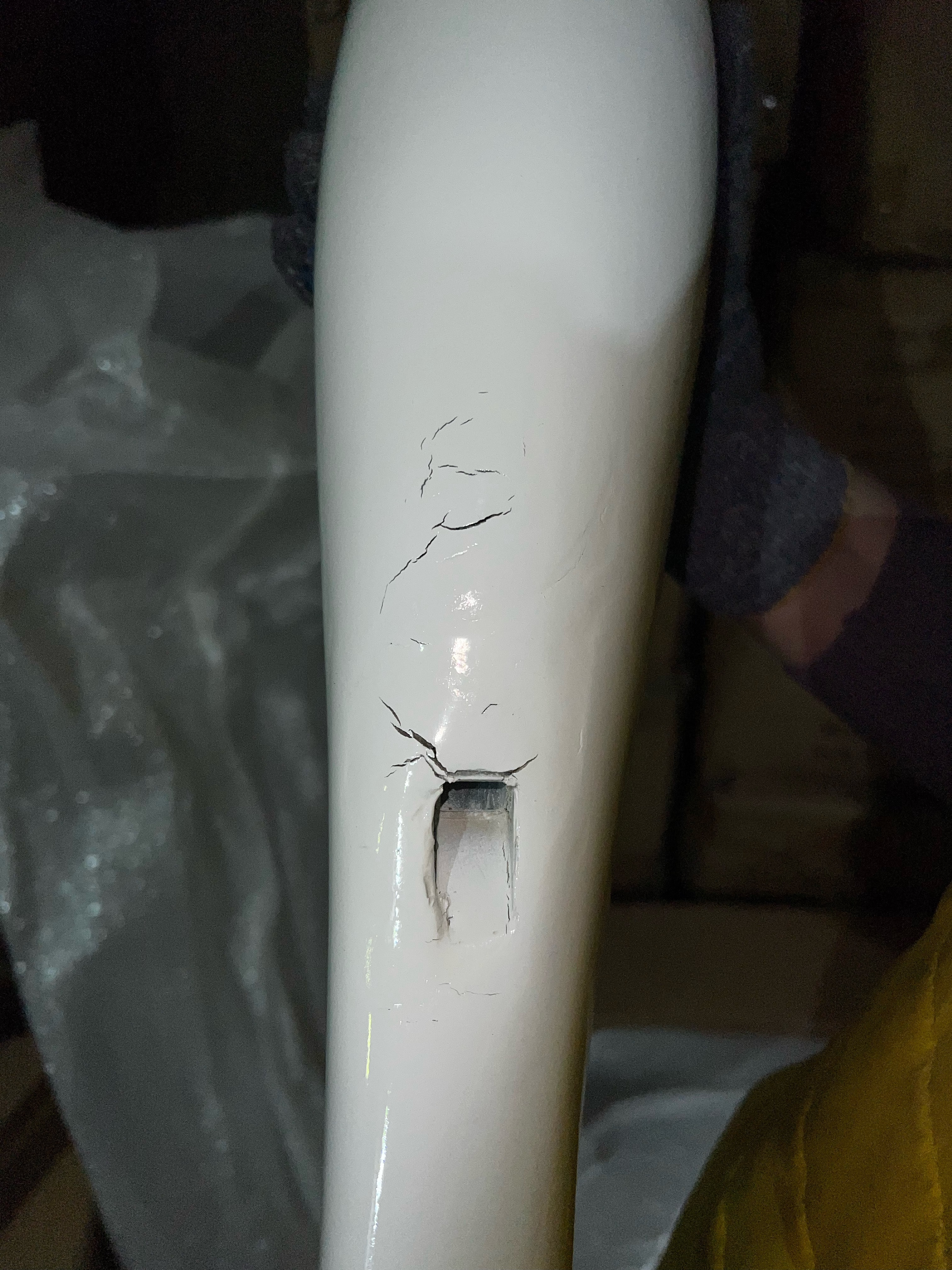 В креплении в голени имеется дефект, но не смотря на него, манекен полностью собирается и устойчиво стоит. Смотрите фото.