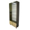 Стеллаж с полками и двойными дверцами из стекла.