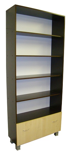 Стеллаж с нижним ящиком, размеры 850 мм х 320 мм х 2000 мм.