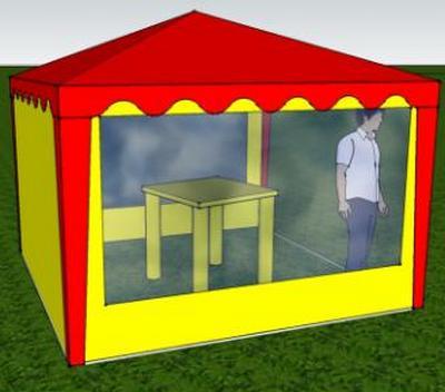 Стенка изготовлена водостойкой тентовой ткани Oxford 240D PU 2000, устойчивой к воздействию солнечных лучей. Окно из пленки ПВХ.