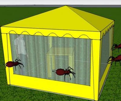 Противомоскитная сетка. Стенка изготовлена водостойкой тентовой ткани Oxford 240D PU 2000, устойчивой к воздействию солнечных лучей.