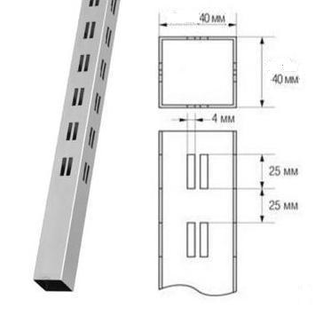 40 мм х 40 мм, варианты длины – 1500 мм, 2400 мм, 3000 мм.